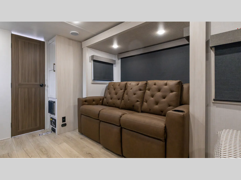 Sleeps 10 Slides 2 Length 37 ft 11 in Ext Width 8 ft Ext Height 11 ft 3 in Hitch Weight 860 lbs Dry Weight 7743 lbs Cargo Capacity 1917 lbs Fresh Water Capacity 40 gals Grey Water Capacity 60 gals Black Water Capacity 60 gals Number Of Bunks 3 Available Beds Queen Refrigerator Type 12V Black Glass Refrigerator Size 10 cu ft Number of Awnings 1 Water Heater Type Tankless AC BTU 15000 btu TV Info LR HD TV Awning Info 21' Electric w/LED Light Strip Axle Count 2 Washer/Dryer Available Yes Shower Type Standard Similar Floorplans