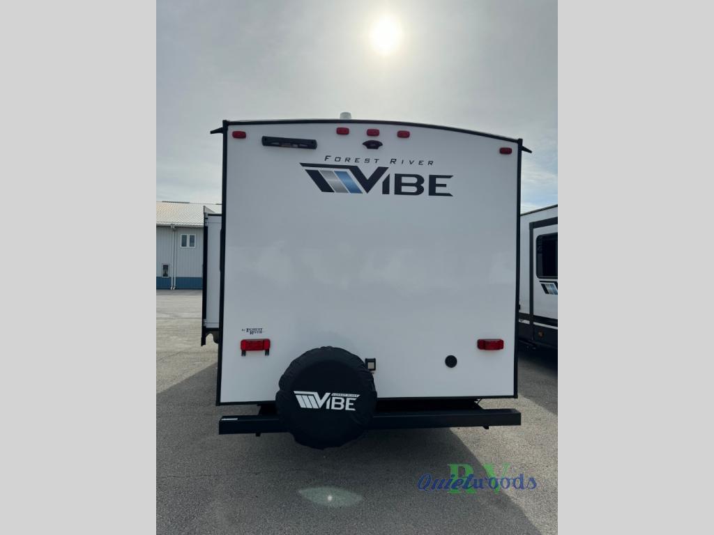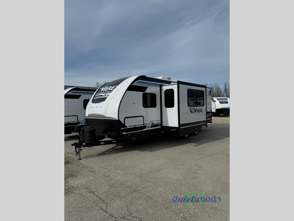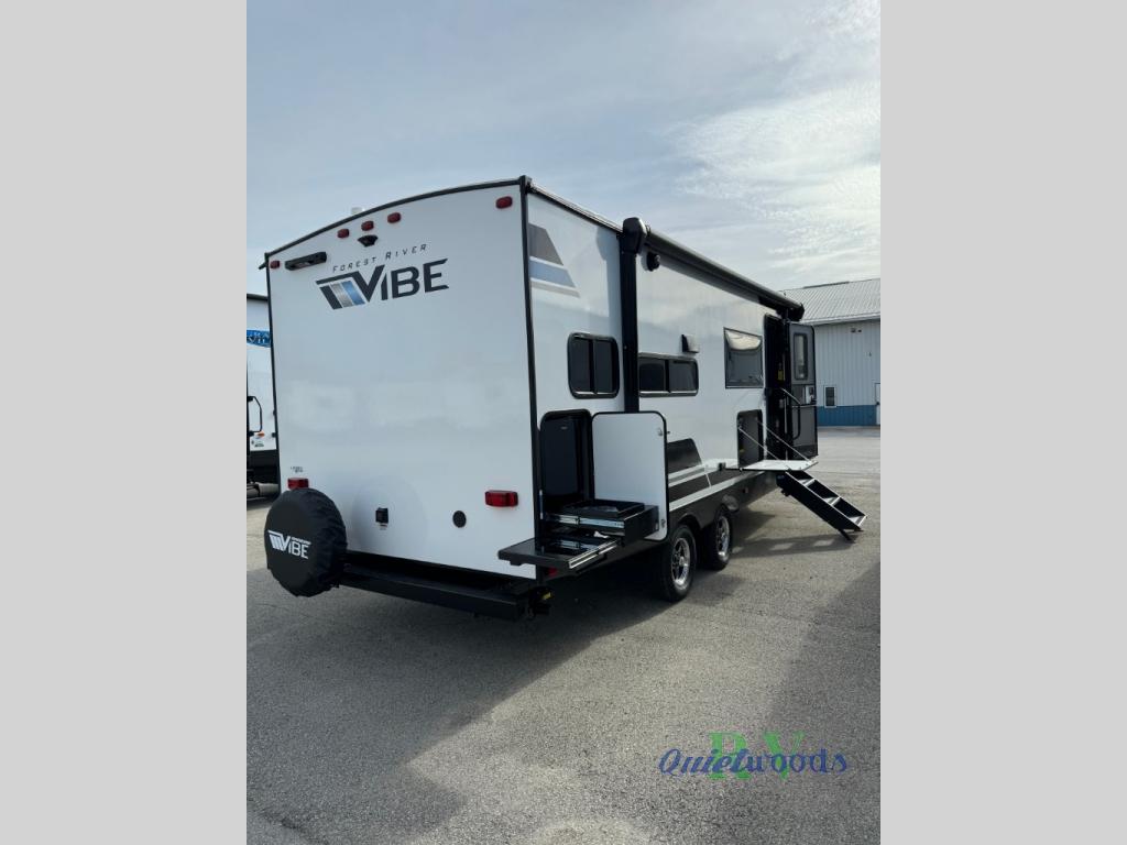 Each Vibe travel trailer by Forest River includes Hyper Lyte construction and a durable laminated "Aluma Frame" for years of use. You will also find an outside shower, a 200-watt roof mounted solar panel, and heated tank pads that will help extend your camping season. The Reserve Package has many at-home features you are sure to enjoy, like the decorative window treatments, solid surface countertops, new black chef's appliance package with an air fryer, and more! These models also include cable and satellite prep and a digital TV antenna with a booster so you can stay connected to the outside world if you choose. Make the easy choice and choose a Vibe travel trailer today!