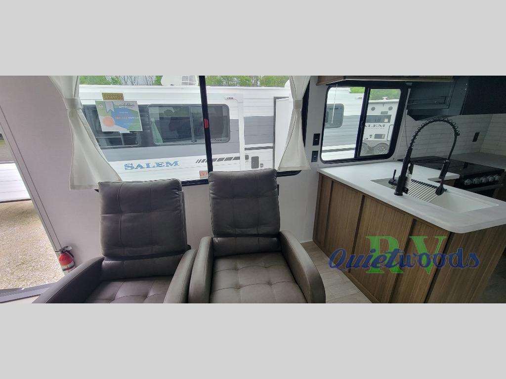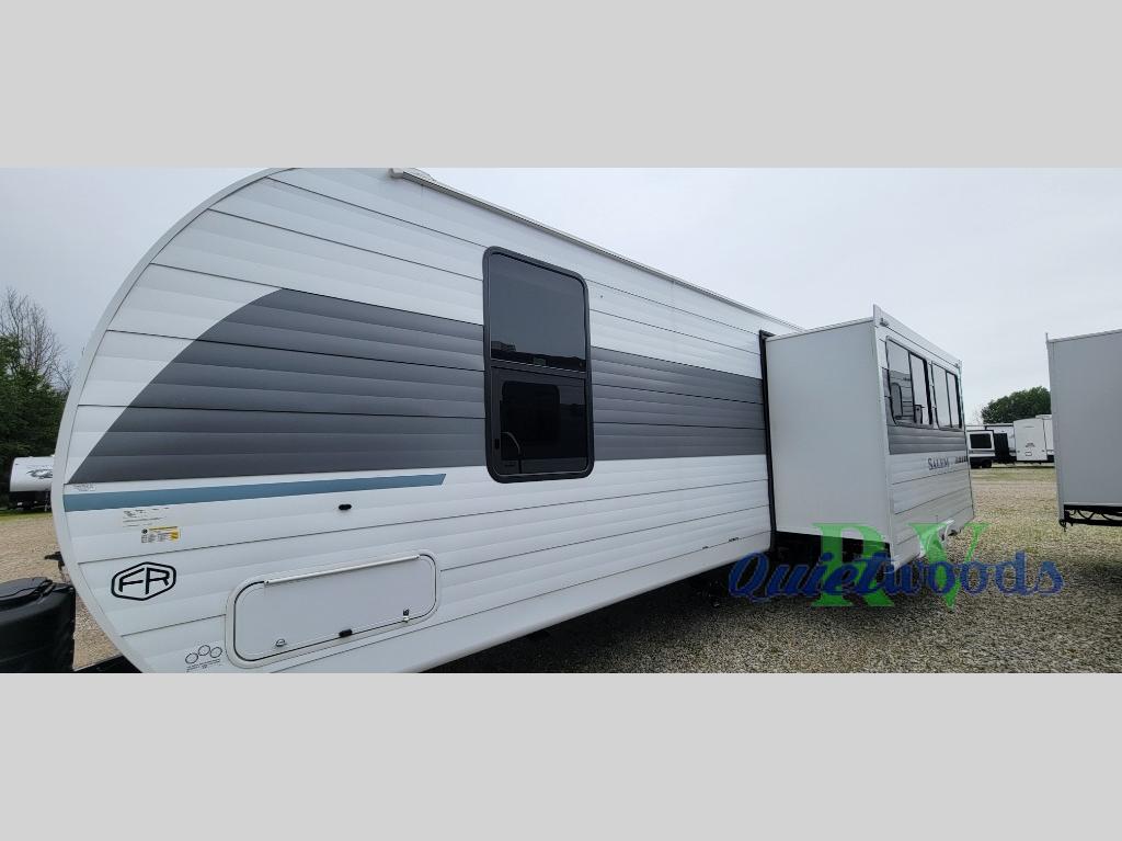 The Salem travel trailers are packed with hassle-free camping amenities! There are a variety of floorplans to choose from between three different regions. The heated and enclosed Accessibelly will help protect against the elements and debris during transport, and the exterior retro/metal redesign is sure to be eye-catching! There are stylish roller shades inside, along with updated backsplash, elegant curtain rods and curtains, plus many more interior comforts! Choose a Salem travel trailer today for quality and value!