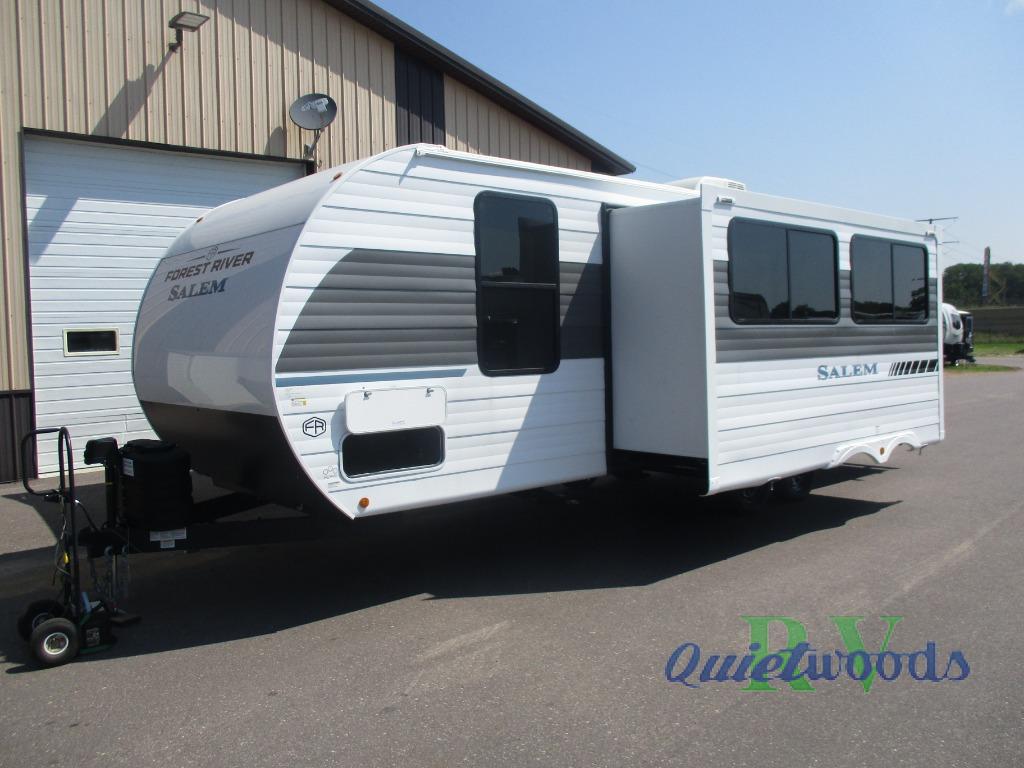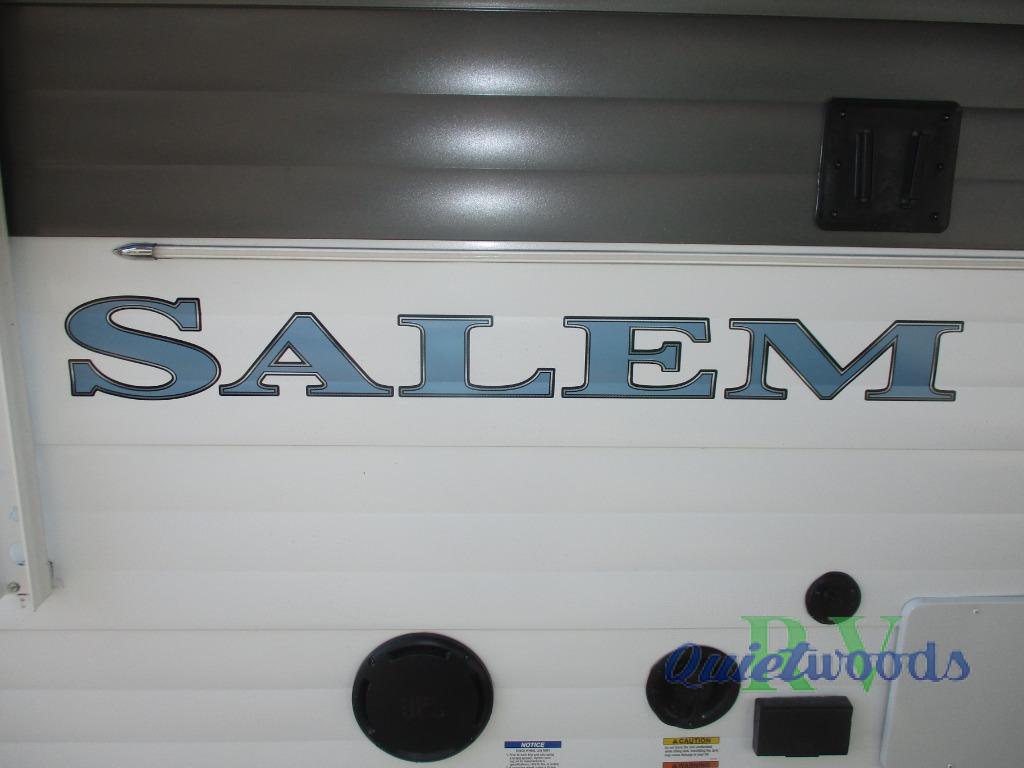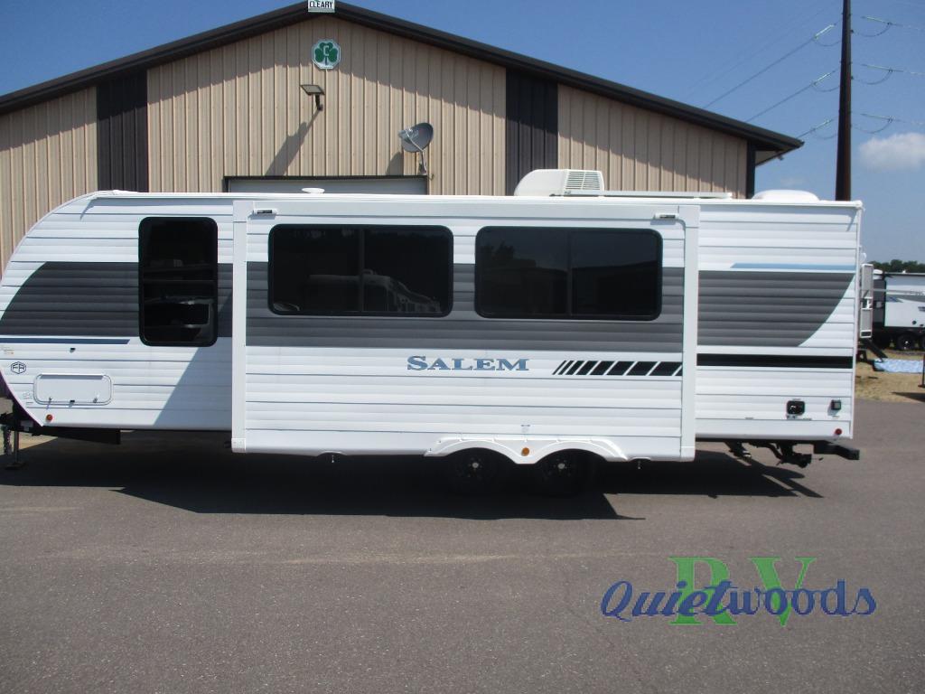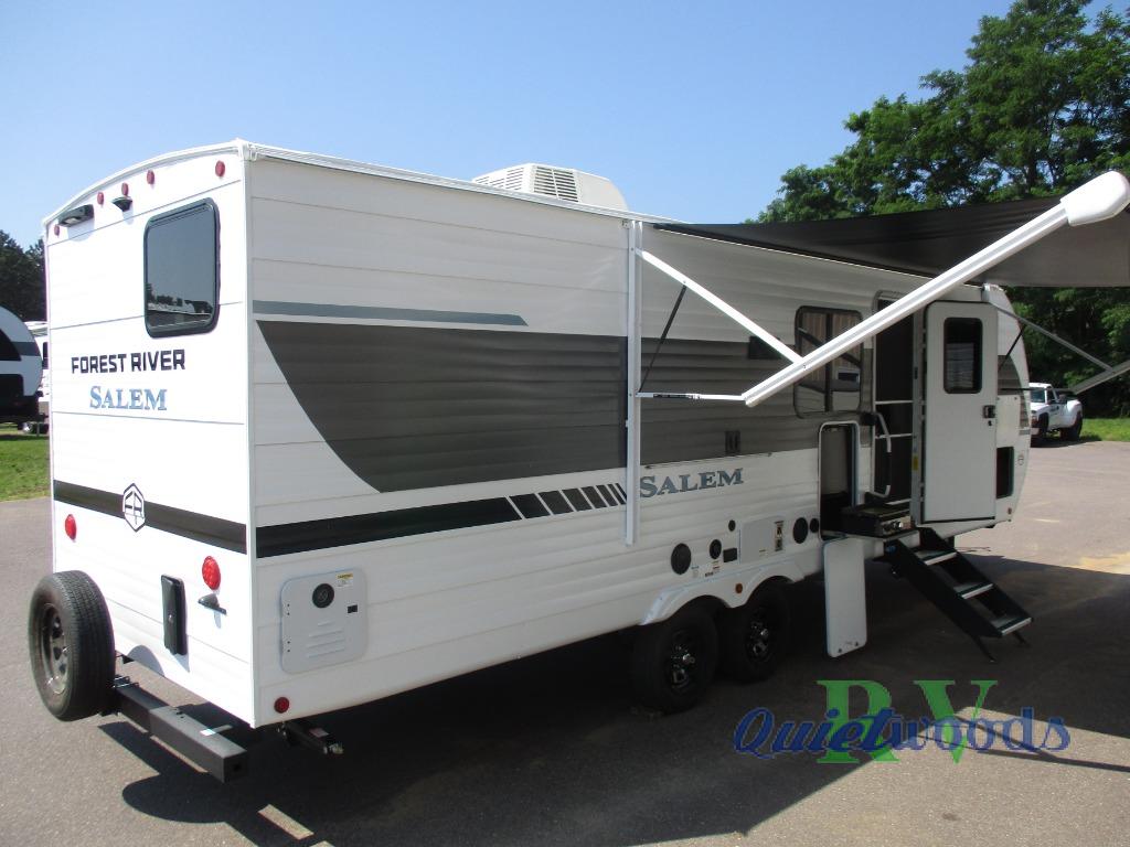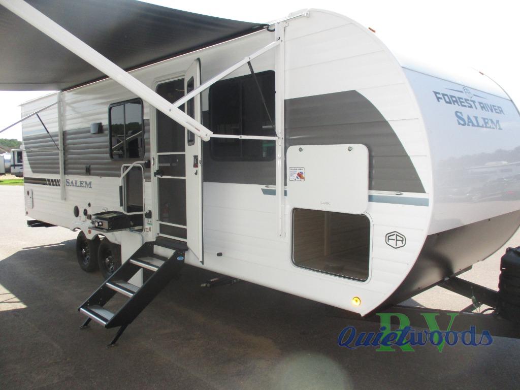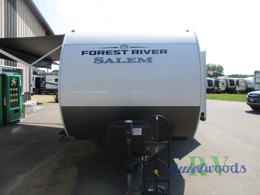 Enjoy years and years of memories with any one of these Forest River Salem travel trailers! They are built with a Dicor PVC roof membrane, a powder coated I-beam frame, and an aerodynamic front radius profile for an easier tow. The triple seal slide out system prevents water from seeping inside and keeps it outside where it belongs. The Best In Class Value Package includes upgraded designer furniture, seamless countertops with no T-mold, and two zone residential soundbars with FM, Bluetooth, HDMI and USB. You will also appreciate the heated and enclosed Accessi-Belly with removable underbelly panels, the power tongue jack with an LED light, and the designated CPAP storage. Some new upgraded features include: a Versa-Tilt bed, a 60K tankless water heater, upgraded showerhead, and so much more!