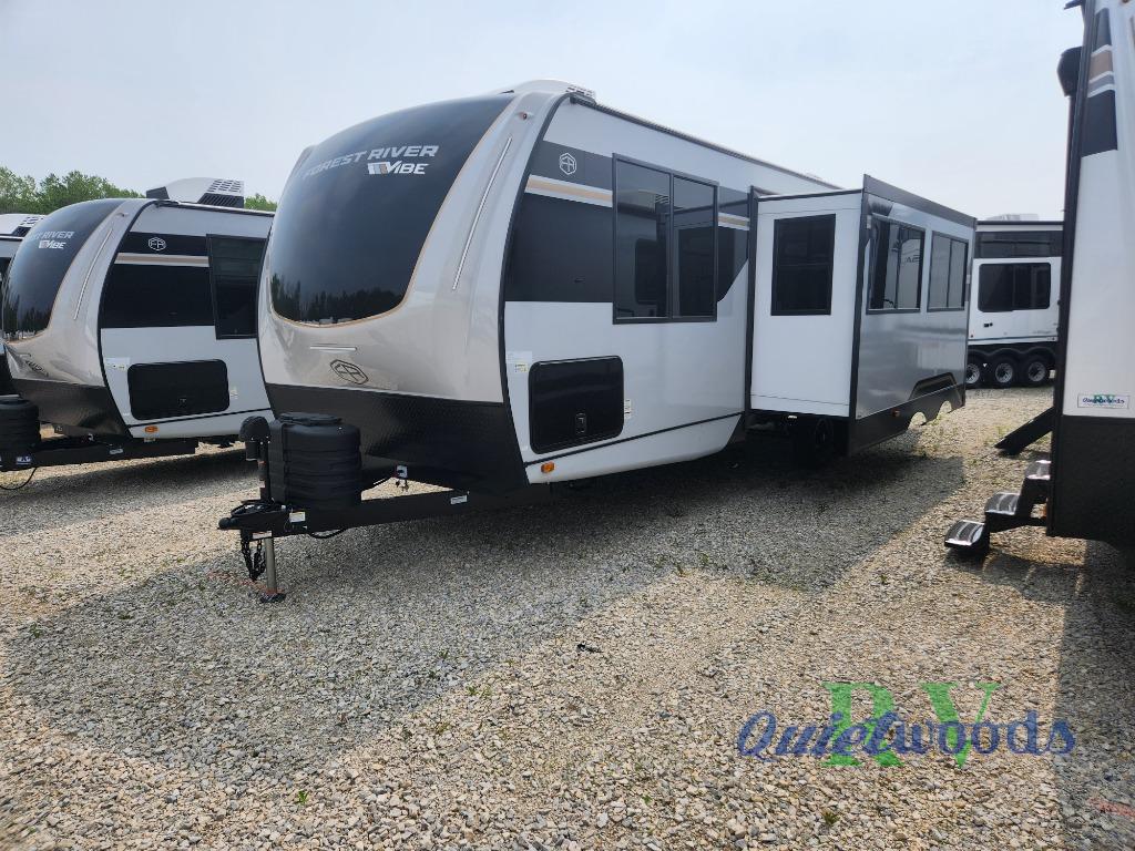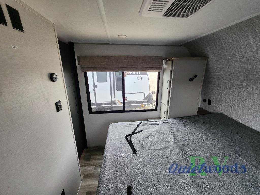 With any Vibe travel trailer by Forest River, you will enjoy comfort at every turn! There is a Norco huck-bolted steel frame, an enclosed underbelly with 12V heating pads, and a PVC roof membrane for added durability. You will also find a universal docking station outside, along with slam latch doors, European style square windows, and an automotive painted front cap. Head inside to enjoy the premium residential-style furniture, decorative window treatments, privacy shades in the living room and bedroom, and many more comforts!