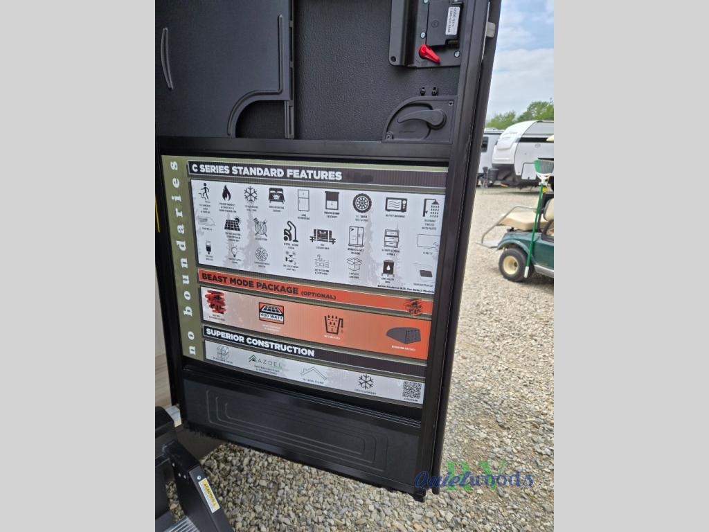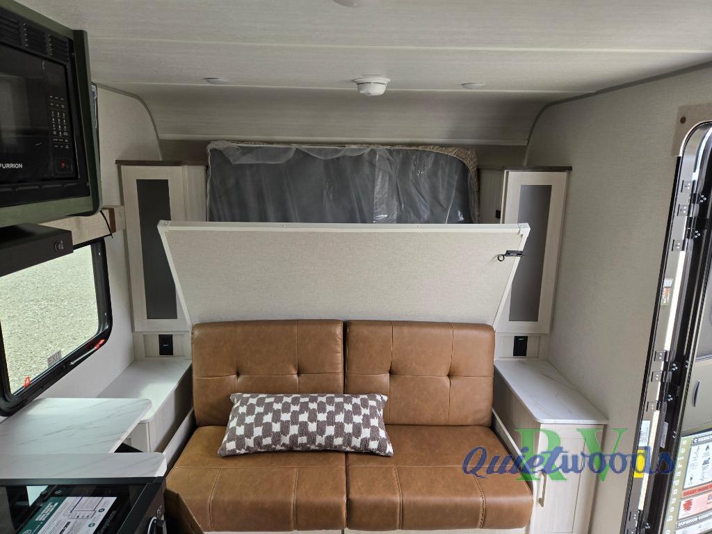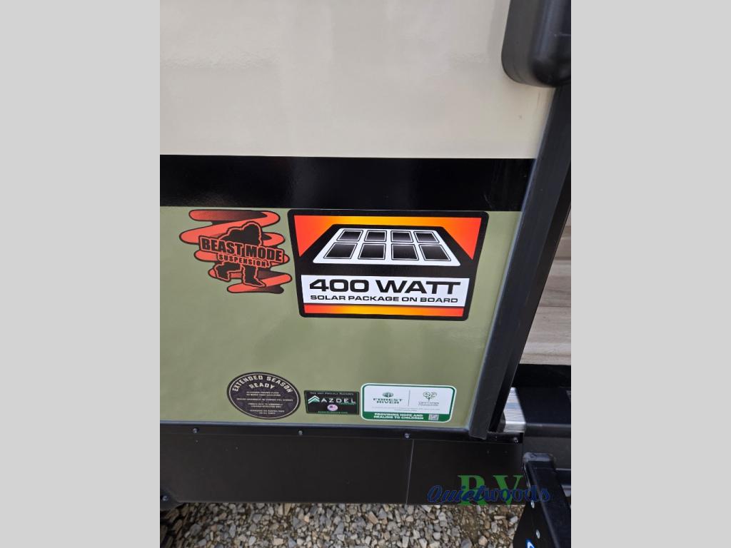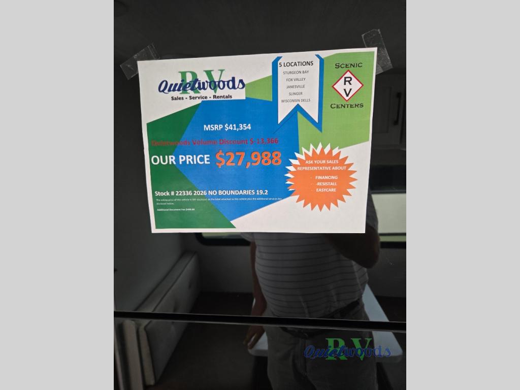 Take this No Boundaries travel trailer out for a no-stress weekend! You'll have a rear bathroom complete with a shower, toilet, vanity, and linen closet, and the kitchen comes with a pantry, microwave and air fryer plus a sink to help you stay on top of the daily meals. A booth dinette will provide a place to dine and play games in the evening, and an overnight guest can make their bed here. Up front, the Murphy bed can be set up for a great night's rest, and there are dual bedside wardrobes to keep your things tidy. When the optional Beast Mode Package on this model is chosen, you'll enjoy a 400-watt solar package, a fresh water filter, a Maxxair roof vent cover, plus a Beast Mode independent suspension for better handling.