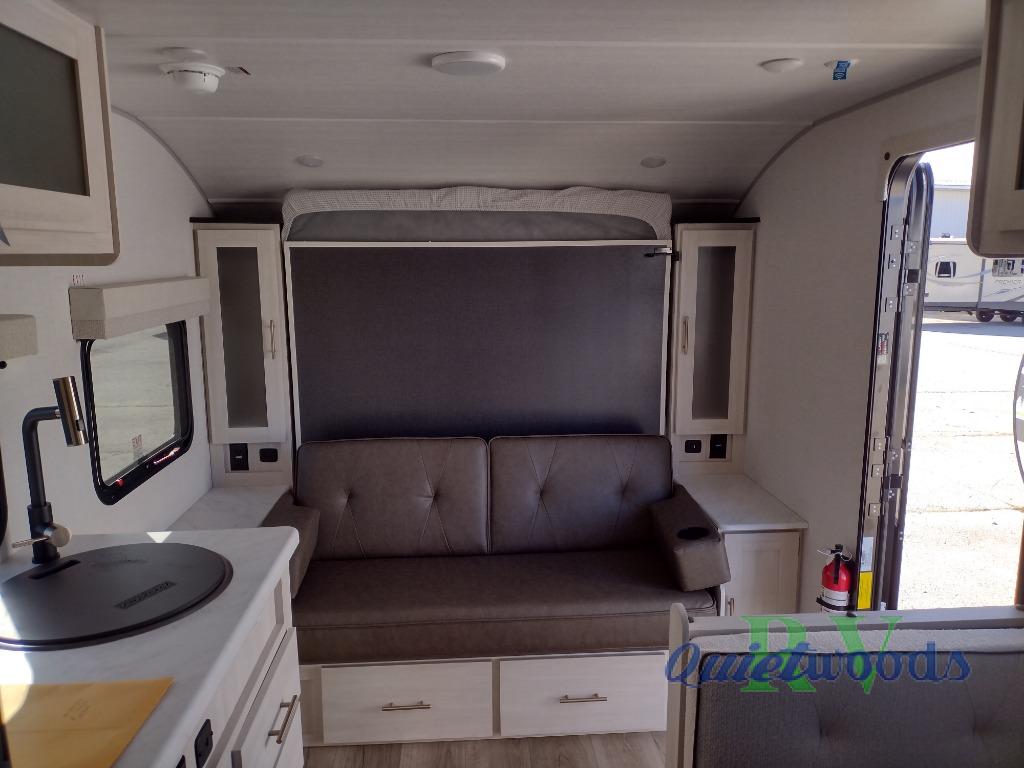 You're going to love all of the conveniences and versatility of this travel trailer! The front Murphy bed can fold away to reveal a sofa which gives you a comfortable place to sit during the day and to sleep at night too. The rear full bath features everything you will need to get squeaky clean each morning, as well as a large wardrobe for you to store your linens. After you have whipped up your best meal with the two-burner cooktop or convection microwave, you can head to the booth dinette and enjoy eating it there comfortably.