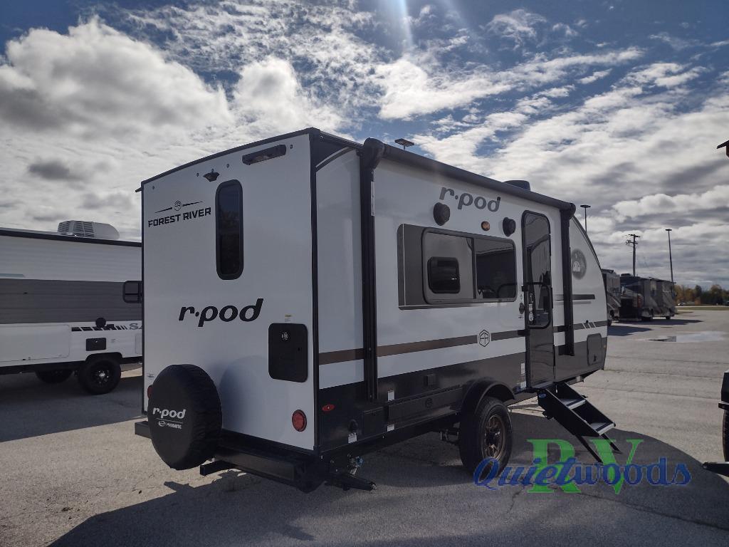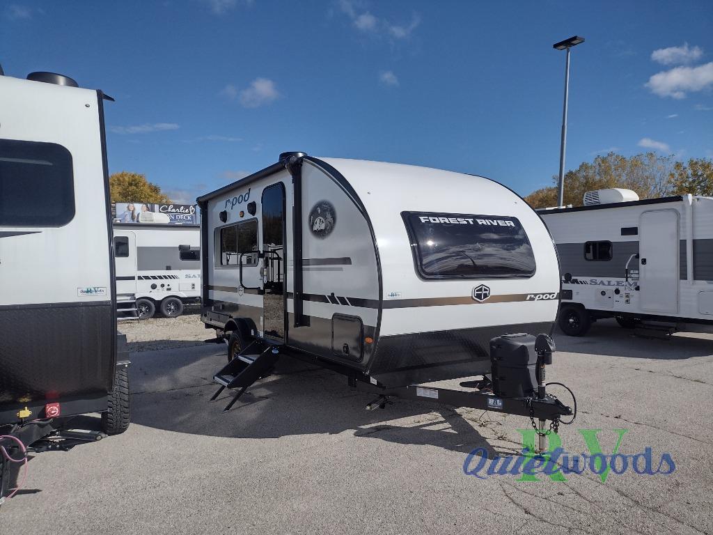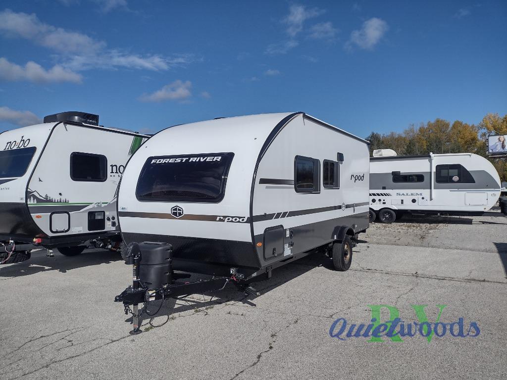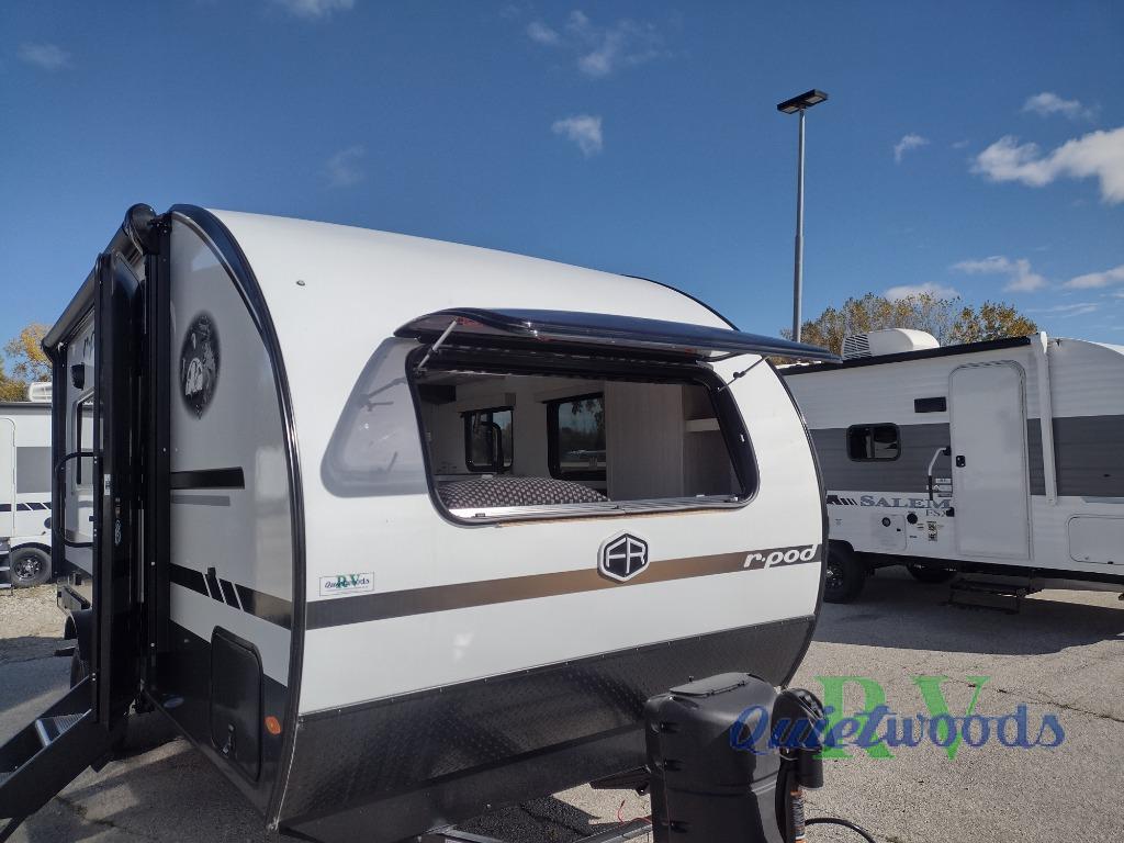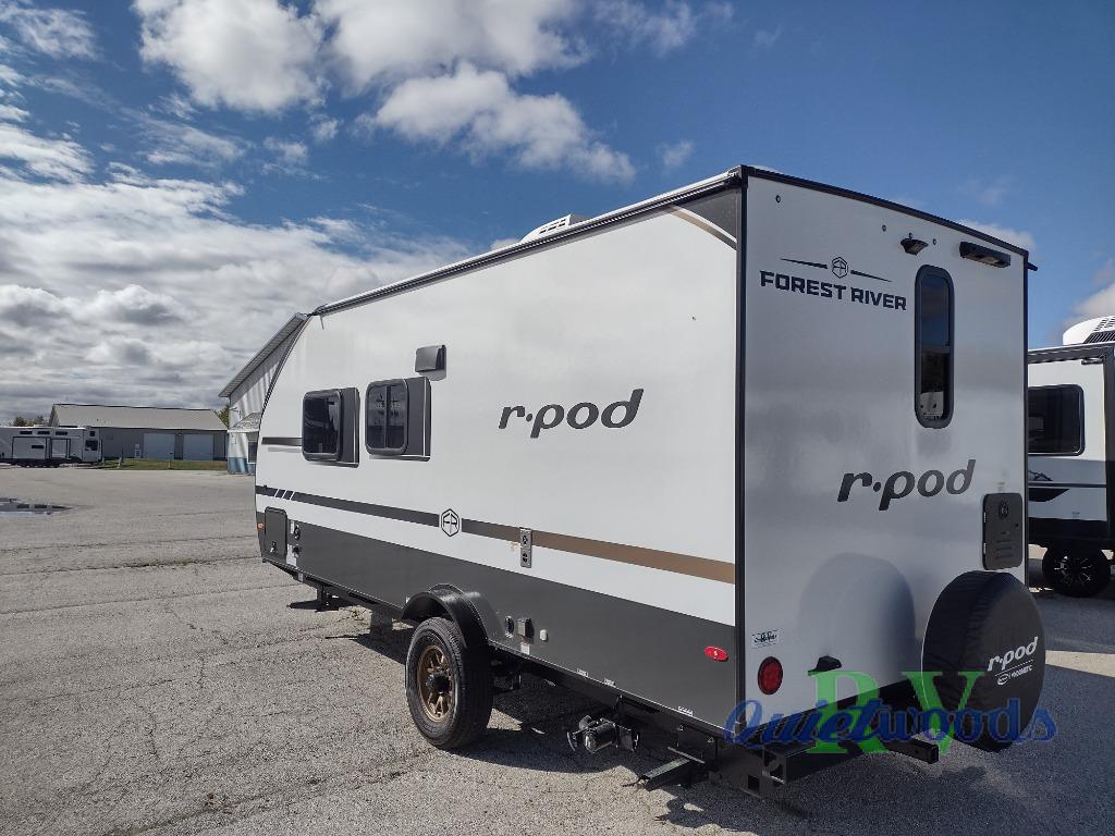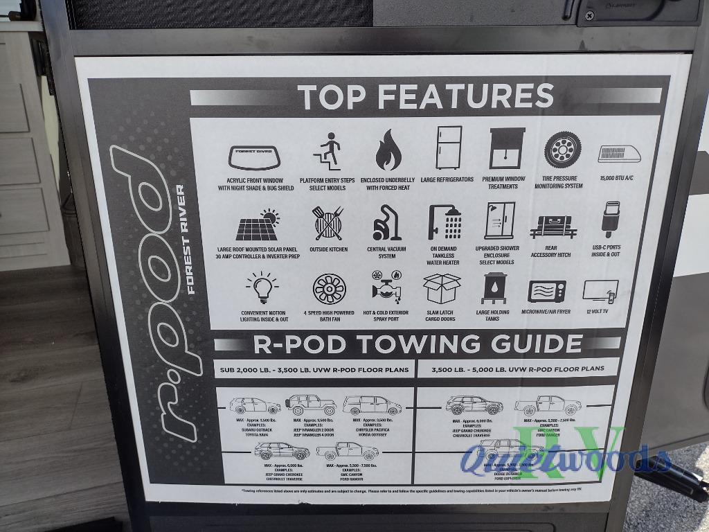 With any R-Pod travel trailer by Forest River, you will enjoy affordable luxury at the lowest tow weight in its class! There is a sealed underbelly with forced heat, a curved dual-pane acrylic front window with a bug screen and night shade, plus a large roof mounted solar panel for off-grid capabilities. The 15K A/C unit will keep you comfortable during the summer camping months, and the tankless water heater will provide endless hot showers after hiking, biking, swimming and more! Each model also includes a black glass friction hinge entrance door, roof ladder prep, exterior motion lighting, plus a hot and cold exterior spray port to wash off sand from the beach. Inside, you'll enjoy seamless Surf-X kitchen countertops, blackout roller shades, and a central vacuum system for hassle-free cleaning!