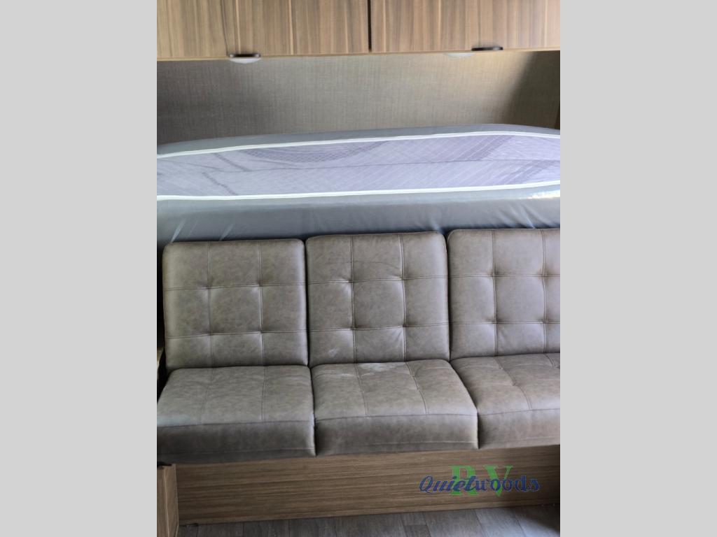 Start camping the right way in this travel trailer! It features a front Murphy bed that will double as your seating and sleeping space each day. The corner set of double-size bunk beds come with storage to keep things out of the way and are conveniently next to the rear corner bathroom with a shower with a skylight to freshen up in each morning. You can prepare your best home cooked meals indoors with the two burner cooktop or head to the outside kitchen to fry up some burgers while breathing in some fresh air. Enjoy your meals, play card games, and even sleep at the U-shaped dinette slide. You will also appreciate the outside shower and the exterior full pass-through storage for camp gear!