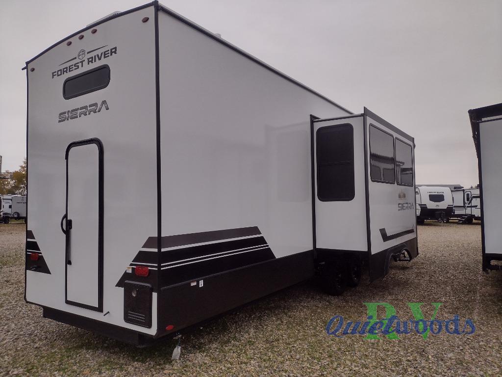 With each Sierra Destination Trailer by Forest River you will enjoy many luxurious features, such as crown molding over the kitchen cabinets, solid surface kitchen countertops, a memory foam mattress, plus so much more. The extra large picture windows throughout let natural light in and provide beautiful outdoor views, and each model includes three or more slides for added interior space. You'll find many exterior conveniences, like the porch light with an interior switch, the rain gutters with extra long drip spouts to prevent black streaking, and an electric awning with LED light strip, plus more! You will stay comfortable year around with dual 15,000 A/C units plus each model is constructed with an Underbelly Armor for better protection and insulation!