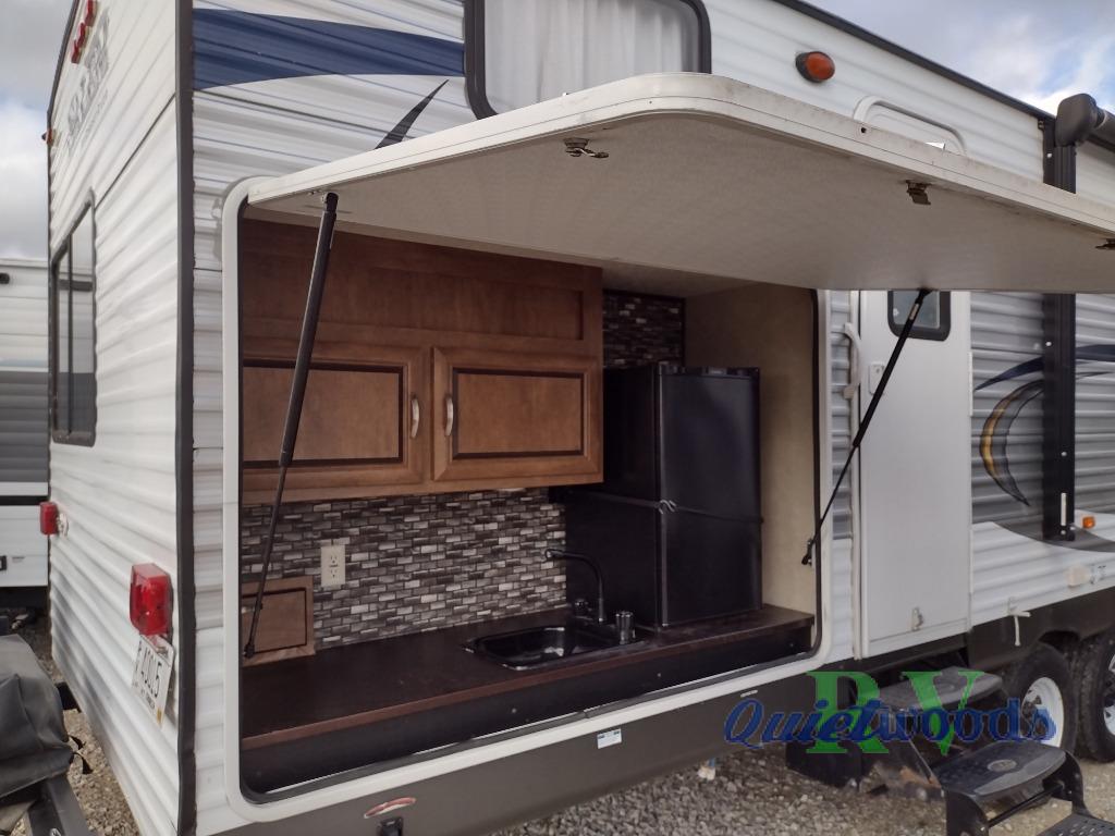 The outdoor chef in the family is sure to enjoy the outside kitchen as well as plenty of storage with the pass through compartment area, and so much more!
