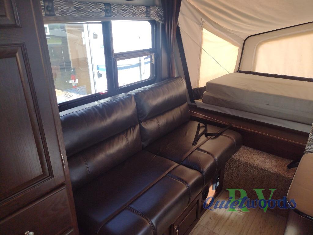 This SolAire Expandable is a wonderful addition to any family that enjoys an outdoor adventure. Because of the sofa sleeper, booth dinette, and two queen tent beds, you won't have to worry about where you will lay your head each night while traveling in this trailer since it can comfortably sleep seven adults. You also won't have to worry about where you will store all of those leftovers from dinner because this trailer includes an 8 cubic foot refrigerator, and the tile-look flooring throughout this trailer is what gives it that home-like feeling.