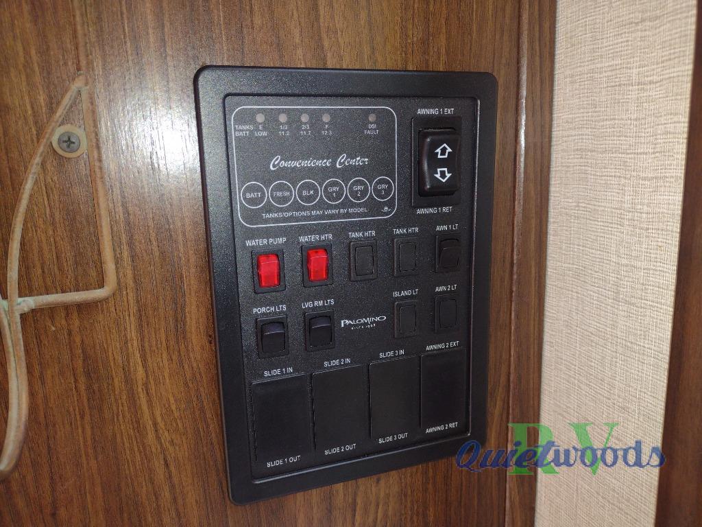 Palomino has equipped the SolAire Expandable with several indulgent amenities. The skylight in the bathroom will keep the trailer feeling open and bright as you go about your day, and if that doesn't bring in enough sunshine, you can simply switch on the LED lights throughout the trailer for an extra boost of light. The USB charging station makes it possible for you to keep your modern electronics full of battery life, even in the great outdoors. And even on the darkest of nights, you can still enjoy an evening outdoors because of the electric awning with an LED light strip.