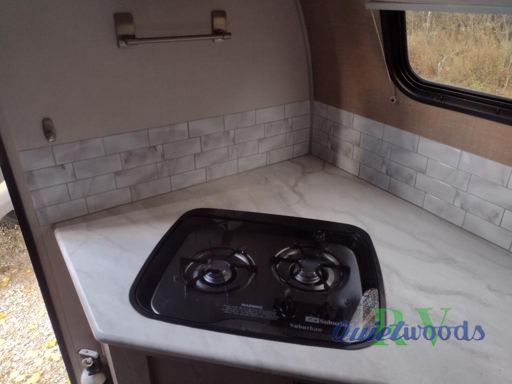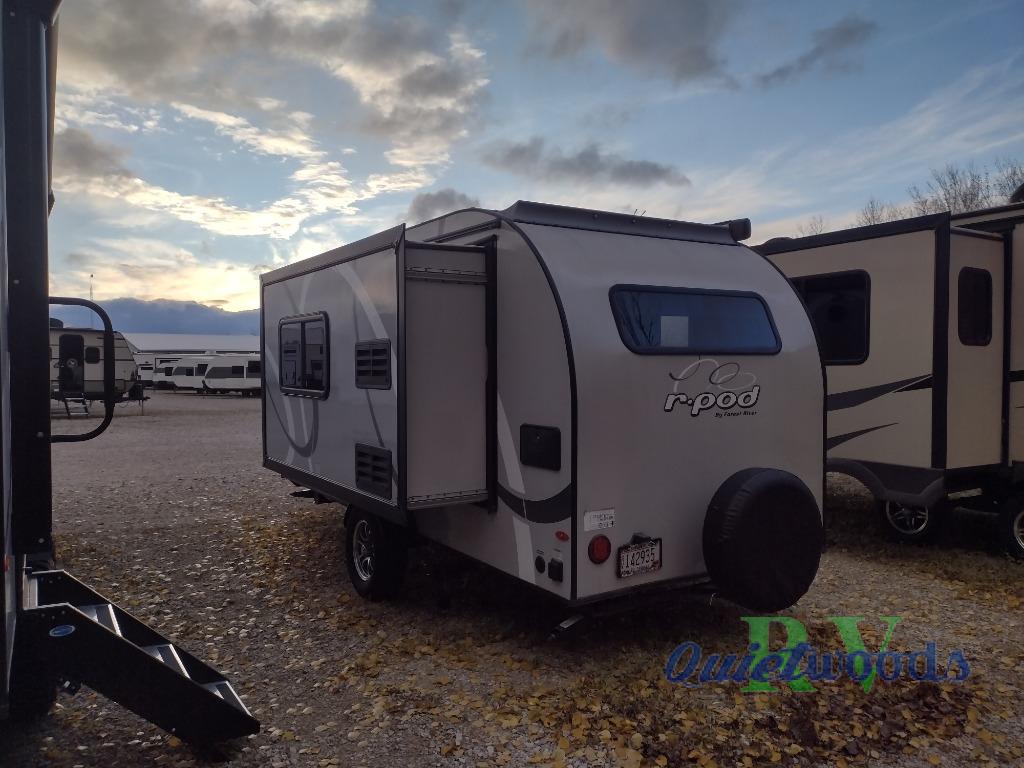 Whether your camping trips take you near or far you will want this single slide out R-Pod travel trailer. The unique rear kitchen features extra counter space as well as a two burner range where you can whip up a snack or your meals. Enjoy family time at the U-dinette and at night you will be impressed with how easily it is to convert this area into a sleeping spot for the kids. This unit also includes a queen bed, a pantry, and a wardrobe for all your valuables. With a wet bath in this model, washing up after a long day is a snap. Come check out this R-Pod travel trailer today!