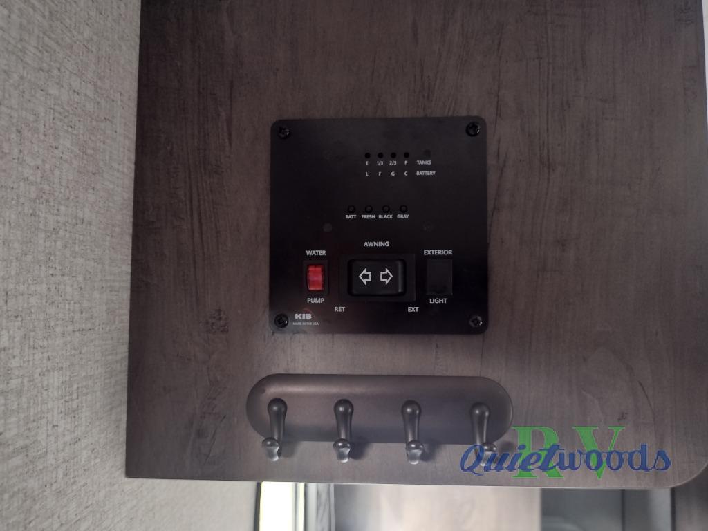 After making dinner on the two burner cooktop or inside the microwave, you can dine at the booth dinette or outside under the 8' power awning if you brought along your camping chairs. Either way you will be comfortable and the dinette may even sleep one person if needed. After playing outdoors all day, everyone can return to get cleaned up in the private toilet and shower room then fall asleep on the queen bed up front or the bunk beds in the rear. And everyone can wake up the next morning to do it over again.
