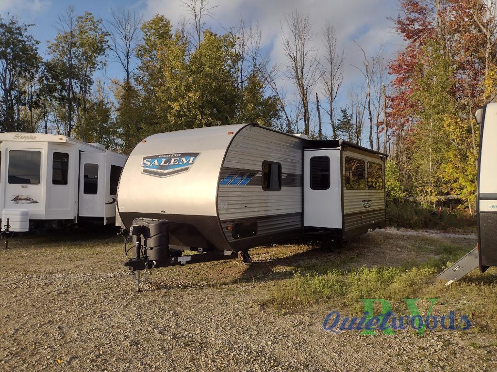 Enjoy years and years of memories with any one of these Forest River Salem travel trailers! They are built with a one piece, SuperFlex roof, a powder coated I-beam frame, and an aerodynamic front radius profile for an easier tow. The triple seal slide out system prevents water from seeping inside and keeps it outside where it belongs. The Salem Best In Class Value Package includes upgraded designer furniture, seamless countertops with no T-mold, and two zone residential soundbars with FM, Bluetooth, HDMI and USB. You will also appreciate the heated and enclosed Accessi-Belly with removable underbelly panels, the power tongue jack with an LED light, the designated CPAP storage, plus many more convenient features. Come see all of the other new features today!