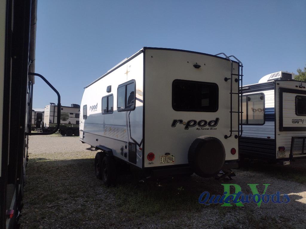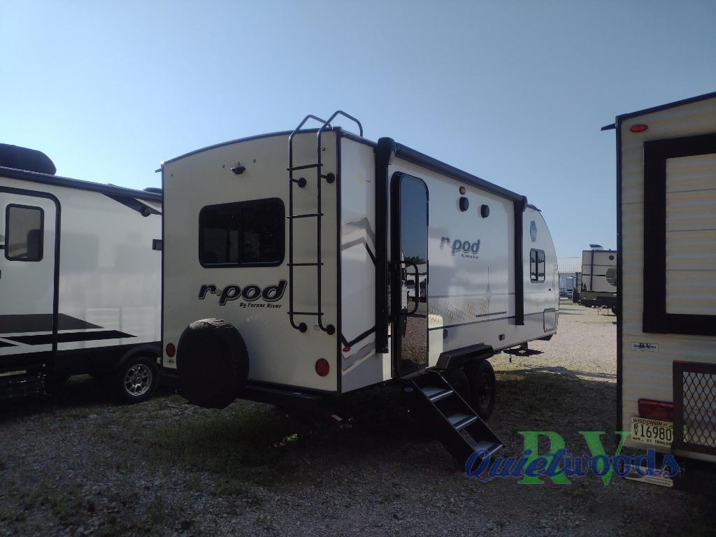 With any R Pod travel trailer by Forest River, you will find affordable luxury and lightweight towing! The Azdel sidewall construction and aluminum framing provide a durable RV made to last, and you'll love the new premium exterior graphics! There is also a tire pressure monitoring system outside, along with a friction hinge entrance door, a power tongue jack, and an exclusive aluminum wheel upgrade. Head inside to enjoy butcher block countertops, multipurpose vinyl furniture, a Showermiser water system, and new Cosmic Graphite decor. The large solar panel will provide off-gird capabilities, plus there is a 2,000W inverter and 30A charge controller for added convenience!