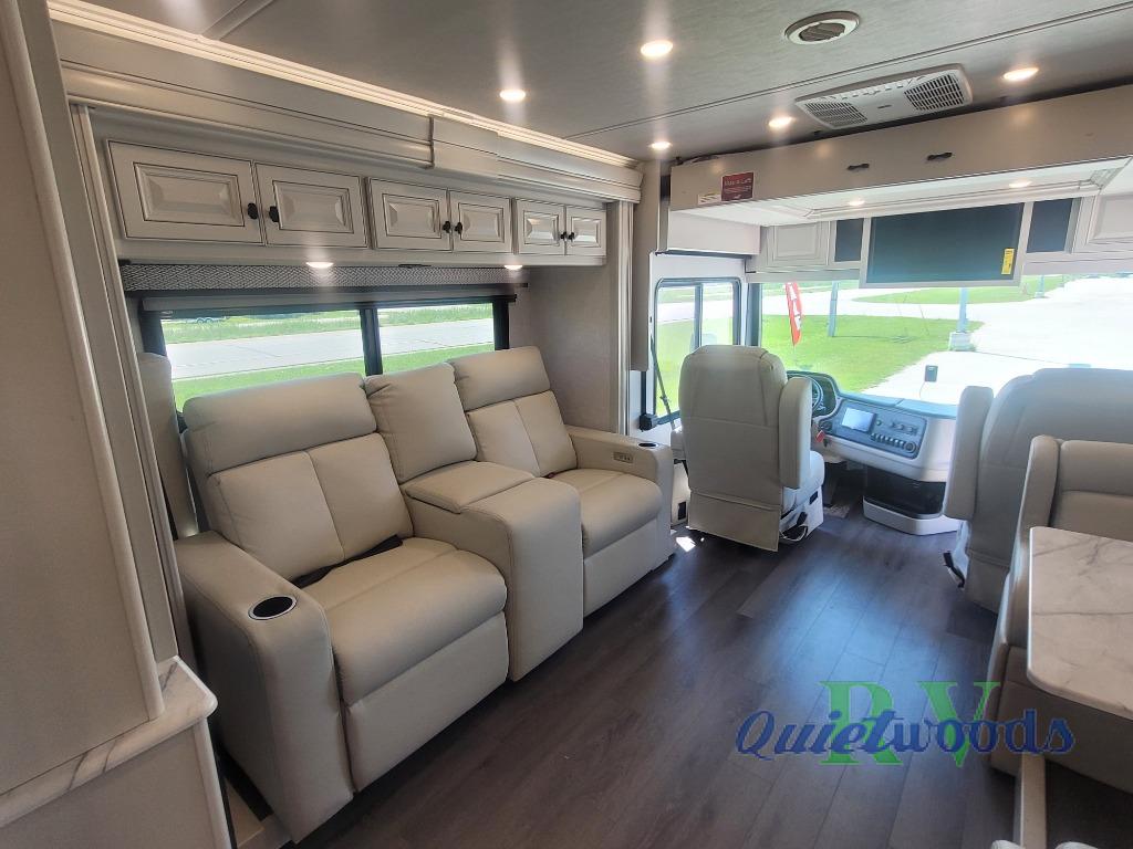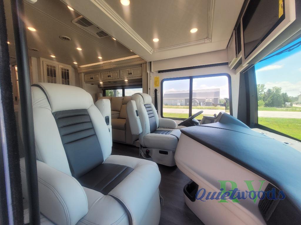 DriveTech’s ergonomically designed steering wheel and easy-to-reach, column-mounted controls turn piloting your RV into a driver-friendly automotive experience. And as the RV industry’s first LED instrument Cluster, OptiView™ has bright graphics, colors and menus, Bluetooth® connectivity and on-demand operation. Together, they both give you convenience and control, right at your fingertips.