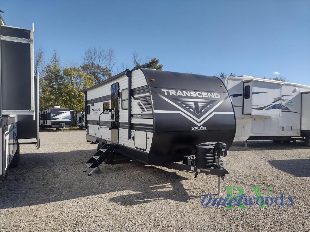 The only thing you need to worry about when you go camping is where to park this Transcend Xplor travel trailer! You'll have everything you need each day to prepare meals, including a three-burner cooktop, a microwave oven, and plenty of counter space. The front queen bed includes overhead cabinets for your books, plus underbed storage for shoes! Choose the optional theater seats in place of the dinette, and you won't even know you're away from home!
